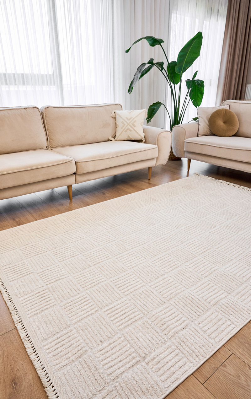 Kabartmalı iskandinav tarzı dekoratif halı koleksiyonumuzdur.Şık ve kendinden desenli halı arayanlar için ideal bir tercihtir.Polyester dokumadır.